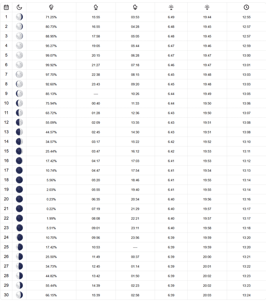 - Fases da Lua, Nascer do Sol e Pôr do Sol no Deserto do Atacama em Novembro 2024