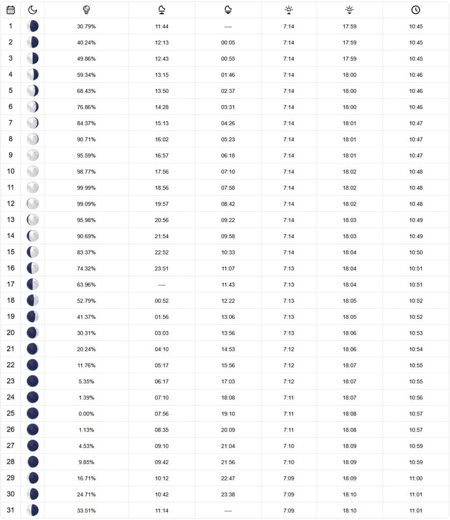- Fases da Lua, Nascer do Sol e Pôr do Sol no Deserto do Atacama em Julho 2024