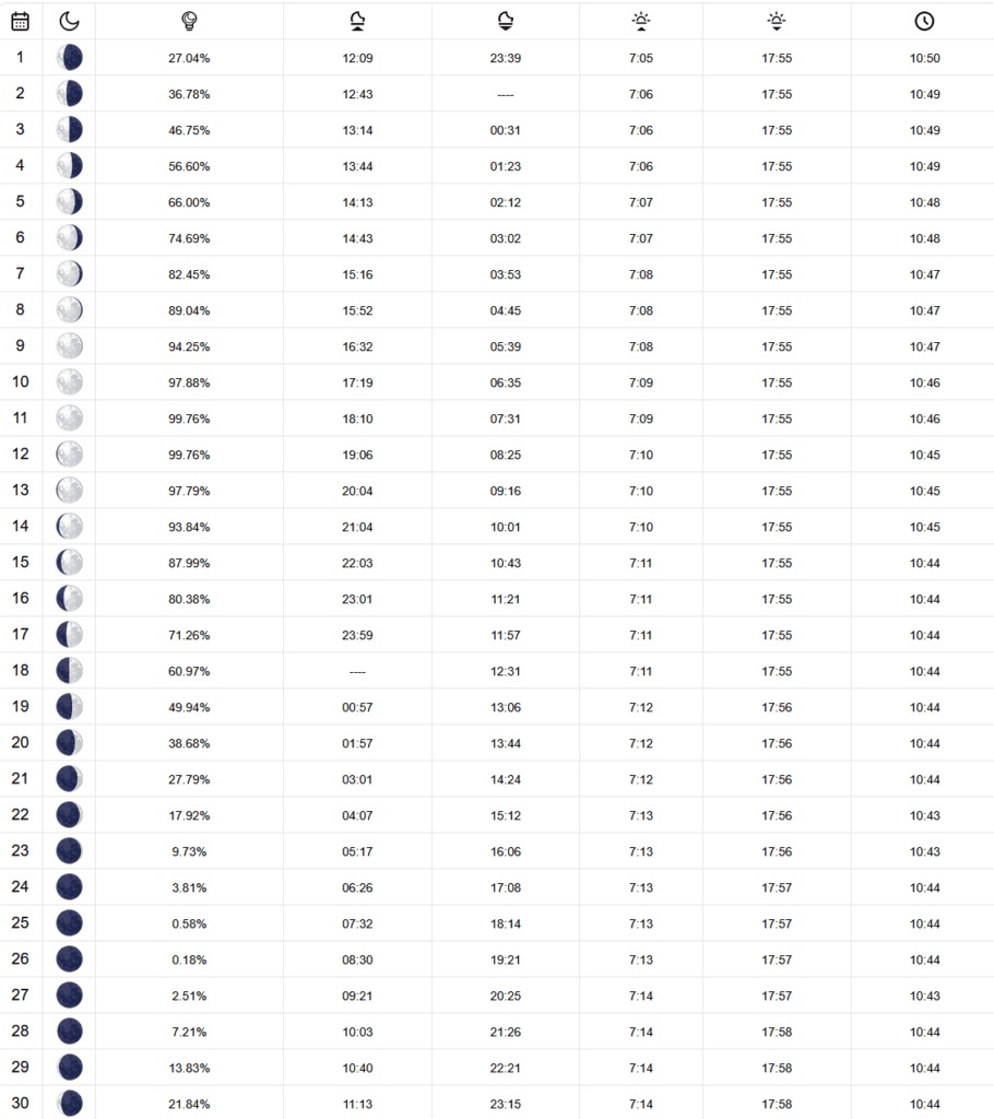 - Fases da Lua, Nascer do Sol e Pôr do Sol no Deserto do Atacama em Junho 2025