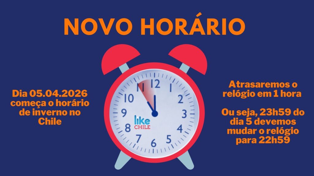 Então saiba que quando você chegar em Santiago no mês de Maio estaremos com 1 hora menos que o horário de Brasília.